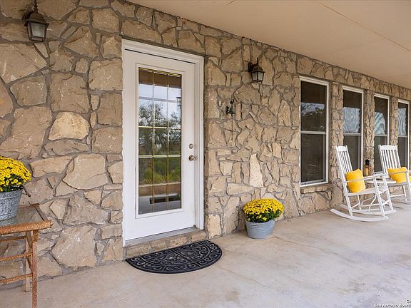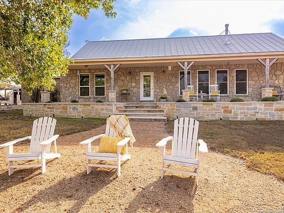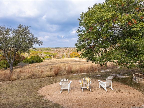 Where Nature Meets Legacy Living ~ A privately gated half-mile driveway winds through this 46 rolling acre property to reveal a rare sanctuary of privacy, comfort, and sweeping Hill Country views located across from the north gate of Cordillera Ranch. This recently remodeled residence offers nearly 4400 square feet of refined living space and lies on top of a crescent that shows off miles in the distance with a wide angle 180 degree view from the 60 foot Pinehurst-style Porch. This home features 2 spacious living areas and at its heart the Great Room rises with a two-story rock fireplace Wall, crowned by pine wood ceilings, where a wood-burning stove glows warmly creating a unmistakable feel of a true mountain retreat. A Billiards room upstairs also shows off the pine wood ceilings overlooking the loft area. New Wide plank Wood floors throughout the home help to contribute to the warmth and create a flow for the 4 Bedrooms with 4 full baths being offered in this split-designed home to allow ample space for family members to enjoy the warmth of this home while serving as a welcoming refuge for family and friends. The Kitchen Hub is located between both living areas and has been updated to showcase beautifully arranged cabinets with a gas cook top and a RO water system for gourmet cooking. New Windows were installed in 2024 which give the home wonderful natural light throughout and bring peaceful outdoor views inside. For your enjoyment, outdoor living transforms the estate into a private retreat while the front porch offers endless vistas and the basketball court turned Cantina sets the stage for gatherings. A meditation/yoga deck, along with mutliple patios, showcase the expansive views of the property, which during sunsets can offer moments of reflection and allow the soul to rest. Wellness and recreation abound with a 17 foot swim spa for year round exercise and stargazing. There is a 20,000 gallon rainwater collection system, well water backup, and solar panels where sustainability meets independence. Wildlife roams freely as the property carries a Wildlife Exemption that preserves its natural character. There are 2 stalls set up inside a pole barn/workshop behind the cantina with pipe fencing for horses or animals to be housed. The over-sized detached 3-car garage has much storage inside with an electric car charging station included. An additional 54 Acres are available for those who wish to expand their legacy estate. This is more than a residence ~ its a refuge for the spirit, a beautiful sanctuary for family, and a true HILL COUNTRY dream realized.