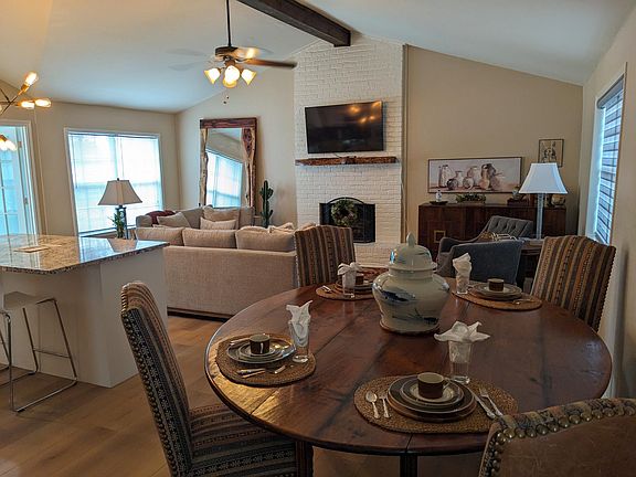 SPACIOUS INTERIORS: Step inside to discover a beautifully appointed home boasting a spacious living area with wood burning fireplace, elegant furnishings and modern amenities designed for comfort and convenience. This home offers 1 large bedroom with queen size bed and a flex area for office or exercise room. Second large bedroom has a queen size bed and a walk out to patio.