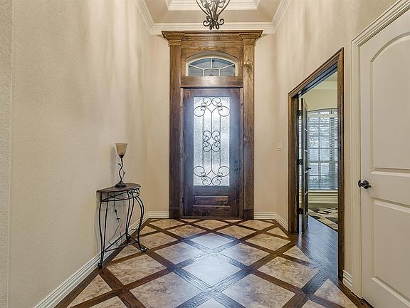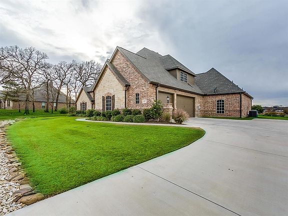 This is an executive home; custom built; immaculate. You will be taken away with the extensive millwork, coffered ceilings, furniture quality cabinetry, hand scraped wood flooring, large covered patio with a fireplace, oversized bedrooms, master ensuite with a deluxe walk in shower... This acre lot is private with mature trees and landscaping. The added bonus room upstairs with a half bath is perfect for a man cave or a children zone. Location location location - close to Fort Worth and all amenities but country living. The kitchen is a chefs delight with stainless steel appliances, large walk-in pantry and oversized island; all open to the family room with a beamed ceiling and corner stone fireplace.
