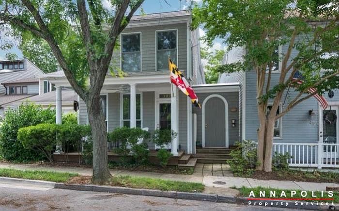 Annapolis/Eastport 3 bedroom/2.5 bath single family home -- a study in balance, simplicity and sophistication. Completely rebuilt and expanded in 1997; typical Eastport front porch with pillars; grey stained cedar siding, soothing symmetry. Magical wisteria-lined alley with arched front gate leads to center entry foyer. Unique glass and steel staircase with nautical lifelines. . Floor to ceiling windows and doors, wide plank heart of pine floors. Cook's kitchen with butcher block counters and three stool snack bar. Large family and dining/living rooms. Elegant fenced in backyard with deck and stone patio, full lot width storage shed that matches main house. Second floor master bedroom with walk-in closet and in-suite bath; upstairs full size laundry. The other two bedrooms have direct access to a shared bath. Powder room on the first floor. $750,000 Robert Jones 408-421-5665