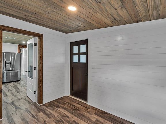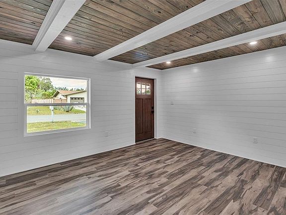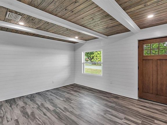 This fully remodeled home is the perfect blend of craftsmanship, style, and modern comfort. Every detail has been thoughtfully upgraded—from the walls to the ceilings—to create a space that feels brand new and truly one-of-a-kind. Featured on a corner oversized lot, this home has so much to offer. Inside, the home features natural white wood shiplap throughout, elegant crown molding, and a Tidal wood tongue-and-groove ceiling that adds warmth and character. The custom kitchen is a showstopper, complete with upgraded cabinetry, a beautiful farm sink, range hood, and an elegant faucet that ties the design together. Both bathrooms have been completely renovated, including new vanities, toilets, and fixtures, while the master suite offers a luxurious retreat with a fully refreshed layout. Every system has been modernized—new wiring, insulation, fire alarm system, lights, fans, and exhaust fans—ensuring worry-free living for years to come. The home also includes new vinyl flooring and carpet, all new doors and windows, and custom-built closets with natural wood shelving for a refined touch. Outside, the upgrades continue with honey-stained wood columns, a fully covered carport with matching tongue-and-groove ceiling, new soffit and fascia, fresh exterior paint, decorative trim, and a brand-new roof. Enjoy the large shed, and carport area on this large lot. This home is a true masterpiece of renovation—combining modern updates with timeless craftsmanship. Move right in and enjoy the comfort, quality, and charm that make this property stand out from the rest!