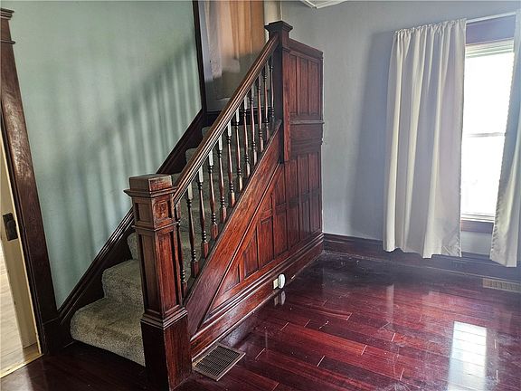Lots of storage in the basement and the walk up attic. Original woodwork ,pocket doors and leaded windows(transom in dining room). The kitchen has a large walk in pantry as well as newer countertops, Laundry is located off the kitchen in the half bath. There is 1 off street parking space as well as on street parking.