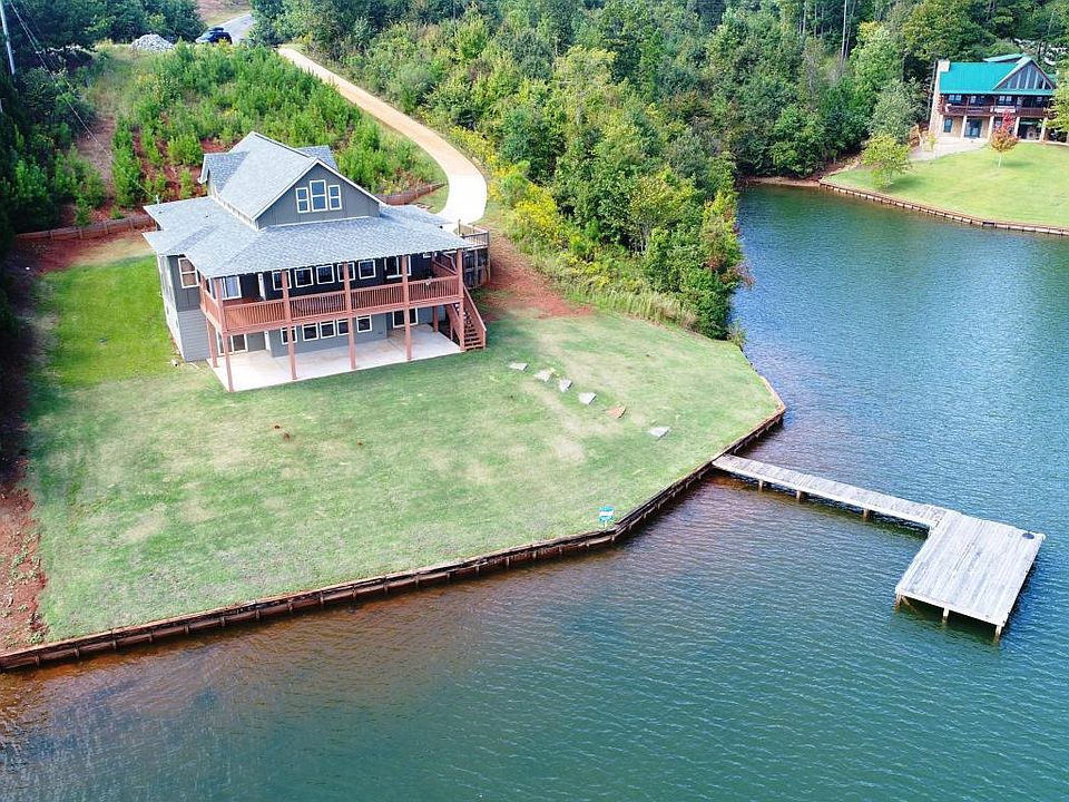 This 3Br/2Ba Lake House has a loft area for extra sleeping, an unfinished basement, beautiful Panoramic Views and 185ft waterfront! The home has a modern-vintage feel with granite counter tops, stainless steal appliances, beautiful Hardwood floors, cathedral wood ceilings, antique vanities, and a custom built railing. Home is currently on the rental market and would make a great investment propery, as is, or double the income by completing the basement. The basement has plenty of room for an addition Master suite and living area or game room.