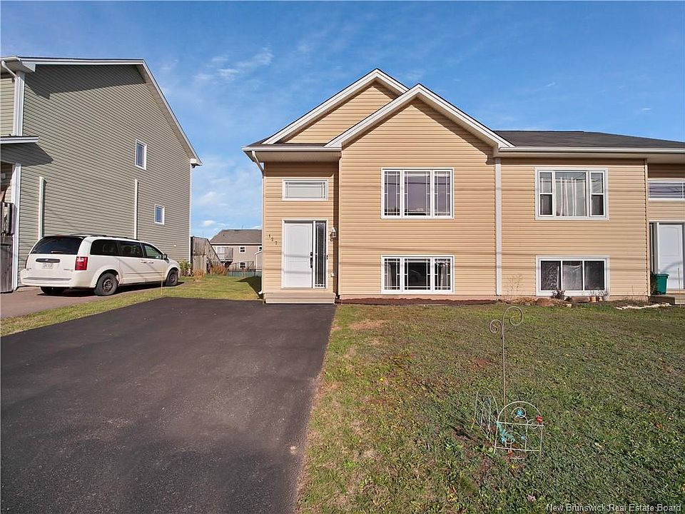 FIRST HOME BUYERS! MONCTON NORTH // TOP RATED SCHOOL // BUILT BY TRUSTED BUILDER MARTELL // CATHEDRAL CEILING. Welcome to this beautifully designed open-concept home, built by the trusted Martell Home Builders. The main floor offers a mudroom with high ceiling, a lovely kitchen featuring a central island and elegant panel cabinets, and a living room with hardwood floors and cathedral ceilings. The dining area overlooks a private backyard with a 10x12 deck and 6-ft privacy wall, perfect for relaxing or entertaining. A half bath with laundry completes the main level. Hardwood stairs lead to a spacious master bedroom with double-wide closet and a full bathroom. Nestled in one of Moncton North’s most desirable neighborhoods, this home is close to top-rated schools Evergreen Park and Bernice McNaughton, as well as all essential amenities. A wonderful place to call home!