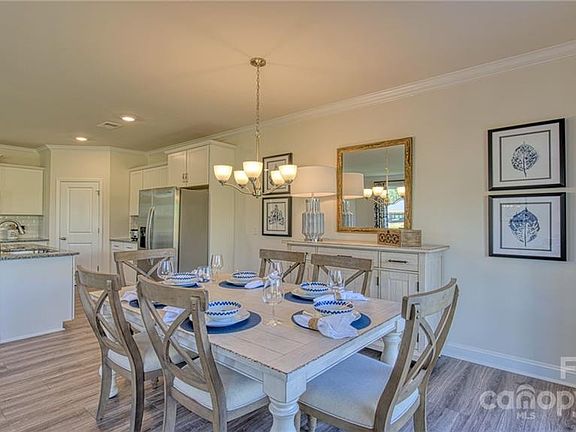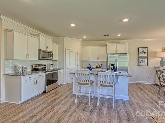 Open concept end unit defines the Carson floor plan w/ extra windows on both floors, 12'X9' den downstairs, & 9'X9' loft upstairs add more desire & comfort. The 9' ceilings downstairs create a more open interior decorated w/ white crown molding. 36" Cabinets w/ granite counters, stainless steel appliances & spacious pantry make for a perfect kitchen design that also provides an extra seating area off of the kitchen island. The dining area is laid out nicely beside the patio glass door allowing visibility outside & quick access to the patio. Laminate wood flooring is included downstairs while the upstairs features carpet & vinyl floors in baths & laundry closet. The primary bedroom is characterized by vaulted ceilings & enormous walking closet, tile on shower walls & glass door, raised height vanities w/ under-mount sinks & granite tops, & elongated toilet. 3 miles away from DT Hendersonville. Includes Builder's 10-year limited warranty. Buyer incentives available w/ preferred lender!