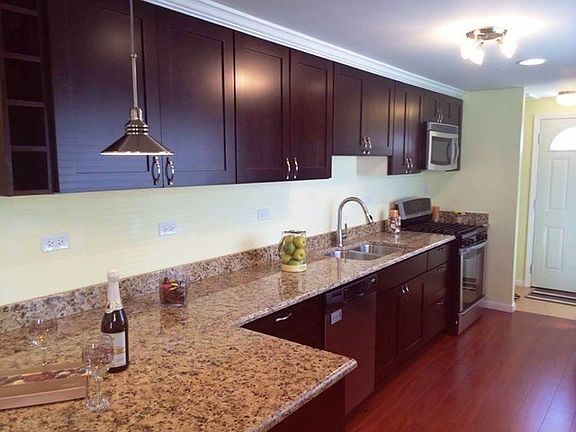 NEW*NEW*NEW- Completely remodeled Top to Bottom with Village Permits. New Espresso kitchen cabinets with granite counter-top and new SS appliances. New bathroom with Travertine stone tiles with high end design. New Electrical Service and canned lights throughout the house. Cherry 12 mm floors throughout the whole house with freshly painted rooms.New Interior /Exterior and Closet Doors. New Siding and 2 Car Garage.
