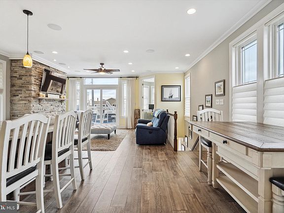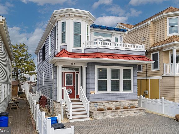 OCEAN BLOCK in Ship Bottom!! Your vacation dream home is on the market! Just four houses from the beach; this four bedroom, three and a half bath reverse living home boasts nine foot ceilings and crown molding throughout. Built by Paul Maina builders in 2016, the open layout features a large kitchen and living area with a stunning floor to ceiling stone fireplace rare to find in a beach home. Work from home? Check out this office with an ocean view to make the work day fly by. Just off the living room is a newly coated deck with an ocean view perfect for morning coffee or happy hour in style! Conveniently, the primary suite is also on the second floor as well as a powder room for guests. Perfect for everyone in and out to the beach all day, the first floor has an additional living area and a full hallway bathroom. Invite your favorite guests, as this spacious home has a junior primary suite, two additional bedrooms and an easy to access laundry room on this main floor. For quiet moments, enjoy the private oasis out back which includes a large patio with gorgeous landscaping, irrigation system and a custom outdoor shower. If you've always dreamed of living at the beach, this luxurious home is calling you. Schedule your appointment today and start making lifelong memories in Summer 2023!! Smart home features: Wifi enabled door locks, 2- zone HVAC, entertainment and security systems.