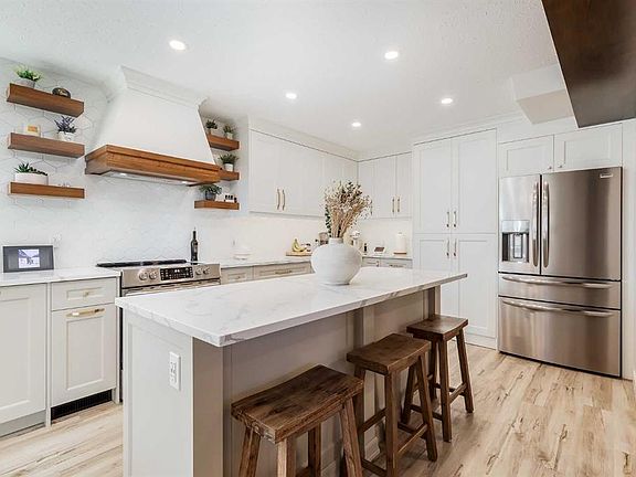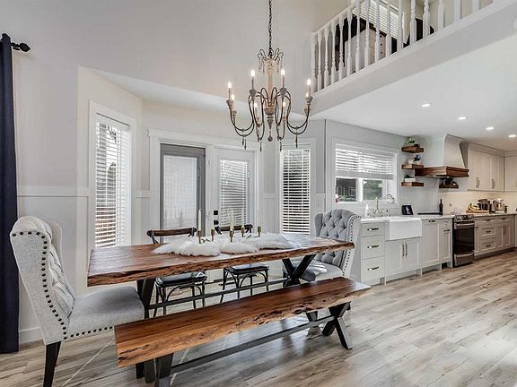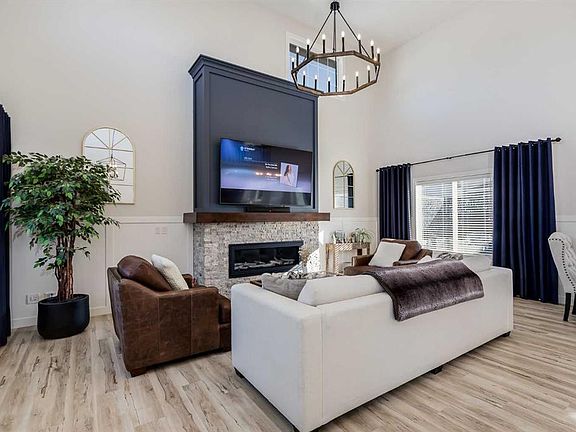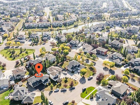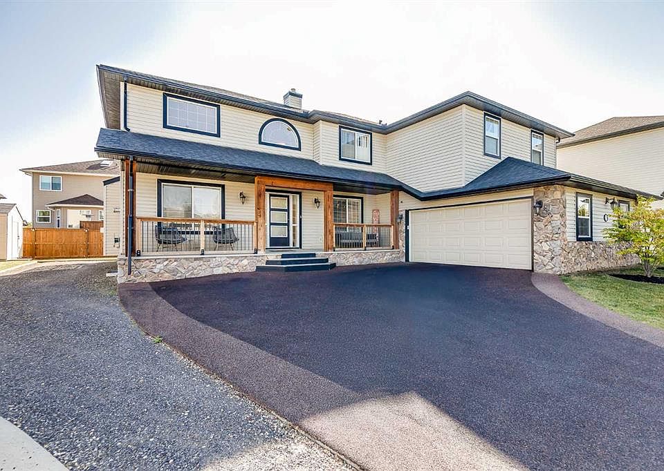 Stunningly renovated with high-end finishes throughout, this gorgeous home sits on an extra-wide pie-shaped lot at the end of a quiet cul-de-sac, just steps from Airdrie’s scenic canals. An expansive front porch sets the tone, creating a welcoming spot for morning coffee or evening relaxation watching the sunset. Inside, soaring ceilings in the living room draw the eye upward, anchored by a striking stone-surround fireplace that invites you to unwind. Extra windows flood the open floor plan with natural light, highlighting the updated flooring, designer details and neutral colour palette. The heart of the home is the outstanding chef’s kitchen, thoughtfully appointed with upgraded stainless steel appliances, full-height cabinetry, stone countertops, modern finishes and a large walk-in pantry. A central island with casual seating and an adjacent breakfast nook with patio doors make everyday living seamless, while a separate dining space with built-in serving bar is ideal for entertaining. Upstairs, a lofted flex area provides the perfect home office or study space. The elegant primary retreat includes a massive custom walk-in closet and a spa-like ensuite with dual sinks, refined finishes and an oversized multi-head shower. Two additional bedrooms and a full bath complete this level. The finished basement extends your living space with a huge recreation room, including areas for media, games and a built-in bar for convenient refreshment and snack refills. Outdoors, the backyard is designed for both play and leisure, featuring a large deck with privacy screen, a built-in firepit for endless summer nights roasting marshmallows and a wide grassy area for kids and pets to play. Parking is plentiful with a double attached insulated side-profile garage, plus an extended driveway with space for an RV or boat. The location is exceptional, offering effortless access to Airdrie’s canals with 6 km of pathways for year-round recreation including kayaking, skating and wildlife watching. Nearby Chinook Winds Park provides playgrounds, spray park, skate park, sports courts and seasonal concessions, while golf, schools, shopping and every city amenity are close at hand. This home perfectly blends upscale design with family-friendly function in a sought-after neighbourhood surrounded by natural beauty!