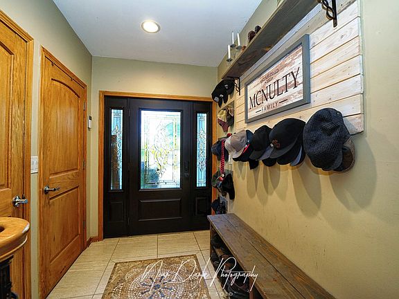 4 Bedroom * 3.5 Bath * Custom, Custom, CUSTOM! This isn't just a house, it's an experience. From the second you pull into the 6-CAR driveway, you know you're in for something special. Step inside and BOOM - the foyer greets you with a custom mudroom bench, sleek wall organizer, and tiled floors with a jaw-dropping inlay. Oh, and the oak staircase? Yeah, it curves dramatically with wrought iron balusters. (We told you this place has flair.) BUT WAIT. Right behind that staircase - a first-floor bedroom suite with its own full bath. Currently a home gym, but honestly... guest suite, in-law suite, or your own personal zen zone - you pick. Head upstairs and get ready for your jaw to drop: a chef's dream kitchen with walnut-finished 42" maple cabinets, gleaming granite counters, and more storage than you'll ever need. Center island with bar sink Wine cooler Coffee bar Breakfast bar Basically, this kitchen is ready for brunches, birthdays, and late-night pizza parties. And the flow? Wide open into the dining area and massive great room featuring a custom wood-accented Heatilator fireplace with full distressed wood backdrop. Total cabin-chic vibes. Slide open the doors and step out to your covered deck, overlooking a fully fenced yard with a fire pit hangout spot AND... wait for it... your very own axe-throwing station. Yes. Really. Inside, don't miss the laundry room and yet another custom half bath (are you noticing a theme?). Upstairs, the master suite is your retreat: oversized, wainscotted accent wall for a perfect headboard backdrop, dual vanities, and a full-body rain shower experience. Guest bedrooms? Spacious and each with their own unique wood wall accents that deserve their own Instagram posts. And the garage? Heated, loaded, and leading you to the ultimate man cave - complete with full-size fridge and rugged style. One of you gets the kitchen, the other gets the man cave. Fair trade, right? Location perks: Minutes to downtown Fox Lake with restaurants, theater, and the legendary Chain O' Lakes boating scene. Warning: This home causes serious FOMO. Don't walk... RUN.