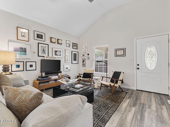 This home was completely remodeled in 2021, offering a fresh and modern living experience. Step inside to discover towering vaulted ceilings that create an airy and expansive atmosphere, complemented by great natural light. For your convenience, all appliances remain, including the washer and dryer, making this home truly move-in ready. Outside, enjoy the inviting covered front porch, perfect for relaxing. Parking is made easy with access off the rear alley. The property also features a gently rolling backyard, providing ample outdoor space for various activities.