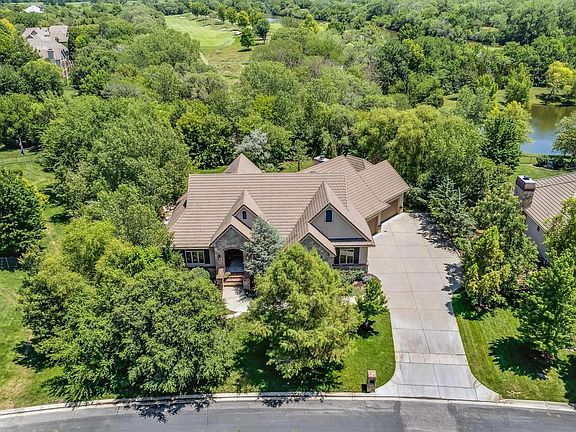 Have you been looking for the perfect entertaining home on an exquisite private golf course lot? The sellers loved this 2/3 of an acre treed lot as they felt like country living tucked away into the heart of the Flint Hills National Golf Course community. This gated community has the perfect appeal with tree lined streets, individual lodges for rent for your guest to use, clubhouse complete with private chef and private golfing (social and golf course memberships maybe purchased separately). Home just recently went through an immaculate remodel that included new kitchen, new primary bath, new hardwood flooring throughout most of main level, new 8 ft sliding doors to access updated composite deck and so much more. Buyers will love having the private trees with the 15th golf tee box right behind the home, the inground pool (with new liner 2023), brick patio with outdoor fireplace, hot tub, waterfall features and so much more. As you enter the home you will see the many features this home has that others do not offer from exquisite sun room overlooking the treed lot, living and hearth room both with gas fireplaces, blown in foam insulation, 2 geo thermal units (one new in 2023), 3 bedrooms on main level all with their own private bath and even a separate 4th bedroom/loft complete with its own private deck, bath, kitchen, separate HVAC, and more above the garage. The sellers loved the entertaining aspects about this home that you will see as you enter the basement from large wet bar, separate wine area off the wet bar, theater room, custom recording studio with sound proofing and separate vocal booth! The basement has 3 bedrooms (one is being used for studio, one for guest room, and one for exercise room), 2 full and 1 ½ bath in basement for guests, separate family room and game area complete with indoor putting range. This is truly a must see home to appreciate all it offers and the tranquility found here so make your appointment today.