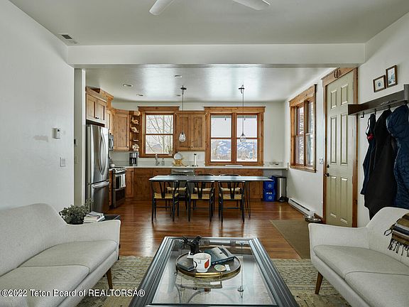 Unbeatable location at the base of Teton Pass. This well-maintained, owner-occupied home has been recently upgraded and is ready for new owners. The home is light, bright and clean with quality finishes throughout including a mix of hardwood flooring and eco-friendly wool carpets in the living areas, tiled baths and quartz countertops in the kitchen. Offering 3 levels of finished living space with bedrooms and baths on each level. A potential 5th bedroom is currently utilized as a media room. Fiber optics (up to 1GB). Mountainside Village is an established neighborhood providing walking and biking paths, hiking and mountain bike trails, a large recreational pond for owners and their guests, convenient walking or biking distance to downtown Victor and quick driving access to Jackson, WY. Oversized 1-car garage, welcoming front porch with built-in bench and outdoor fenced area perfect for pets. In-floor heat in baths and brand new kitchen appliances.