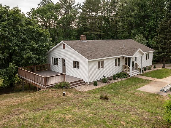 Large ranch on quiet and private road featuring new kitchen (cabinets, flooring, counter tops, and appliances),new forced hot water boiler, new roof, decks, siding, and front door. Bathrooms have been updated and the home has a new front door. Forty two solar panels, 3 heat pumps, and a heat pump water heater gives the home very close to a zero net energy.