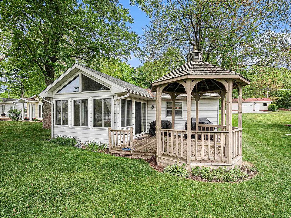 Nestled along the tranquil shores of Little Barbee Lake, this charming 1,504 square foot lake cottage beckons those seeking a serene lifestyle intertwined with nature's splendor. Just a short walk or golf cart ride to two restaurants and a mini mart makes this location where you want to be! This 3 bedroom, 1.5 bath home has over 1500 finished square feet and comes complete with most furnishings! No need to even bring a towel...they are already there for you! Fantastic views wait from the kitchen, living room and enclosed sunroom/family room! Step outside, and you'll find yourself in a private oasis, with a generous 0.32-acre lot that provides a sense of seclusion while embracing the beauty of the lake. Imagine lounging on the lakeside deck, taking in the breathtaking sunsets, or hosting gatherings in the charming gazebo. The detached two-stall garage and outbuildings offer ample storage space for all your recreational gear, ensuring your lakeside adventures are always within reach. With recent updates, including a new water heater and water softener, in 2019 and a new furnace in 2022, this cottage ensures your comfort and peace of mind. But it's the private pier that truly sets this home apart, inviting you to cast a line, paddle a kayak, or simply bask in the tranquility of lakefront living. Home Details: main floor laundry and bedrooms, extra large detached garage, walk-in shower, walk-in closet, breakfast bar, large kitchen pantry, HOME WARRANTY INCLUDED!