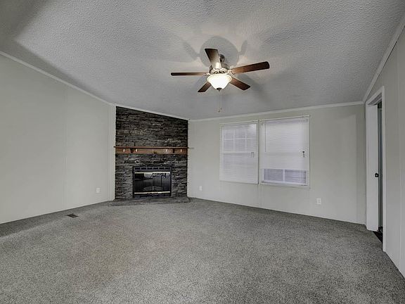 1997 Doublewide with 3 bedrooms, 2 bathrooms on 0.59 acres of land. This home features new carpet, new paint, new roof, fireplace, and garden tub. Possible owner finance with 10% down.