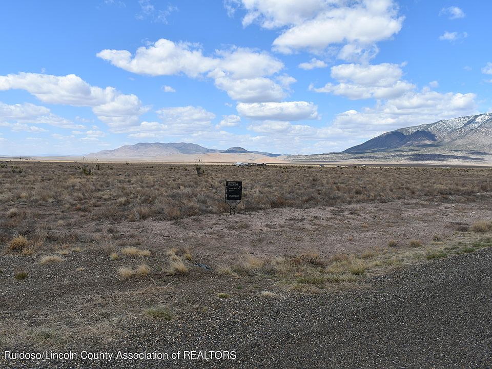 This is a 5+ acre lot in Valle Del Sol in Carrizozo. It is level with 360° unobstructed mountain views. Horses, cattle, poultry are OK - see restrictive covenants. No HOA. $100/yr. for road maintenance.