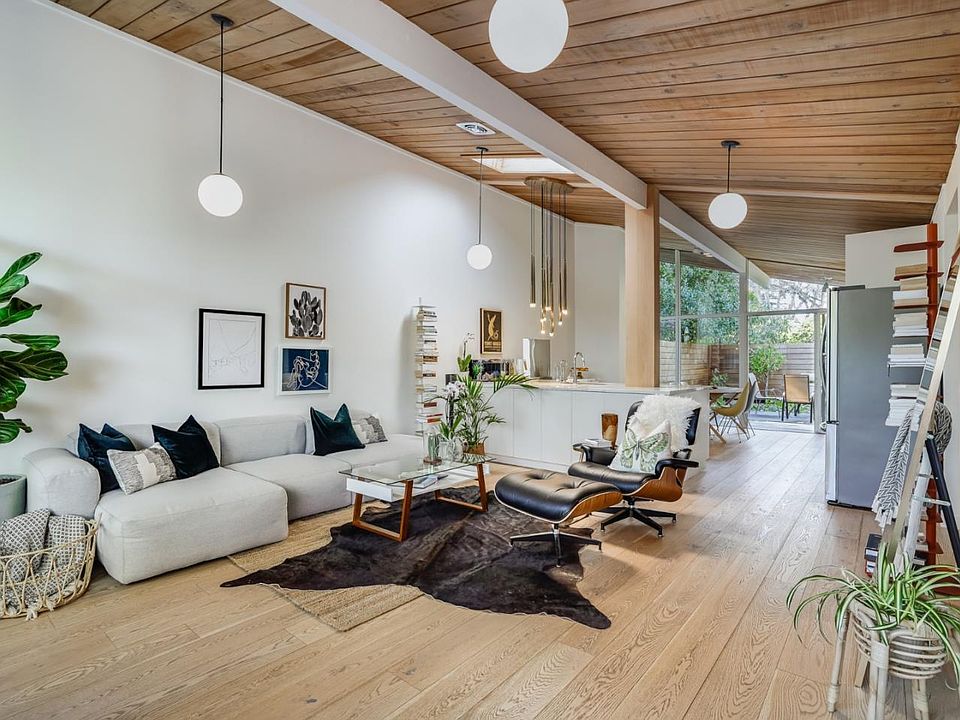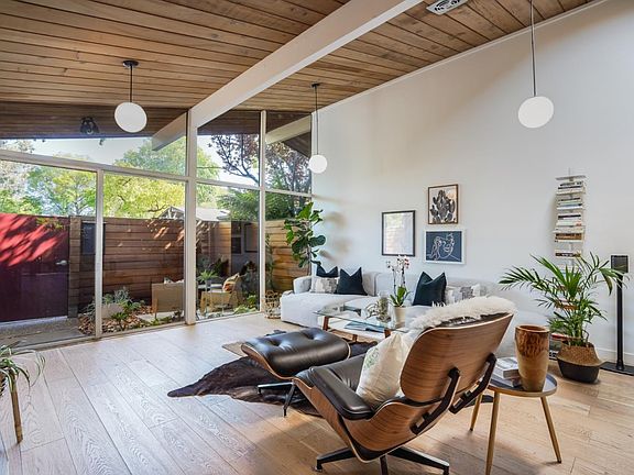Luxury, fully remodeled Mid-Century Modern Eichler Townhouse. Fantastic kitchen with quartz countertops, custom European cabinets, and integrated appliances. Engineered hardwood flooring throughout. Vaulted ceilings with floor-to-ceiling windows. Two en-suites with custom closets, modern bathrooms, and direct access to separate patios. Backyard with spacious shed and direct access to the community pool (only three townhouses in the entire complex have direct access). This beautiful townhome is located in the desirable Greenmeadow neighborhood of Palo Alto. Close to shopping, dining, excellent schools, and freeways. HOA dues cover all utilities except for electricity.