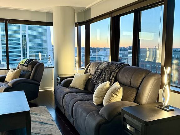 BRAND NEW luxury apartment now available at the high-rise Biltmore Condominiums. Enjoy INCREDIBLE views with brand NEW stainless steel appliances, IN-UNIT WASHER/DRYER, brand new paint and luxury vinyl flooring, and entirely new bathroom! Bathroom includes custom hardwired towel warmer and walk in shower. The apartment also features a CUSTOM dynasty electric fireplace with heating & various color display options. The Biltmore features a private gym, parking garage, 24 hr. Concierge, shuttle to the train station, 4th floor park, and is located in the HEART of Downtown Stamford! Close to all your favorite restaurants, theaters, parks, and UConn Stamford! *UNIT COMES FURNISHED
