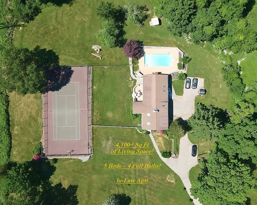 Must see large Unique Updated Converted Barn with In-law Apt SAT 6/22 (11:30-2) & SUN 6/23 (11:30-1:30)! Open-Concept Great Rm w/Exposed Beams, Skylights, Grand Fireplace, newly refin HW Flrs, Lg Kitchen w/Granite Countertops, & Spacious Dining Area! 1st stop off the Kitchen is a lovely Bath w/Tiled Shower, Linen & Lg Closet (W/D hookups). The Hallway features Wide-board Pine newly refin HW flr and leads to 4 Bedrms, Fin Basement and 3-Season Room. The spacious Master boasts a New full Bath, Cathedral Ceiling, Walk-In Closet, Storage at Attic Entry, & Slider to Balcony overlooking beautiful Inground Pool and large Yard. Fin Basement inc Entertainment Rm (GasStove, Custom Bar w/Fridge +8Chairs, 3/4Bth w/Storage, Workshop, WorkOut Rm, & Spacious In-law Apt w sep entry, 1bd, Lg Walk-In Closet, 3/4 Bth, W/D and Dining area). This 2-Acre Property w/Deck, Fenced Yard, Fenced TennisCourt (Pickelball/ Bball??) is only minutes to 495, 93, Amesbury/Newburyport Shops/Dining, & the NH Seacoast!