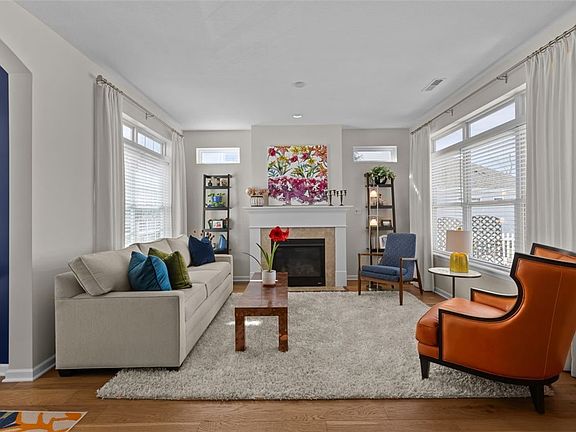 Nestled in a quiet cul-de-sac, this Scamazzi-built Palazzo model offers a blend of luxury and low-maintenance living. This home includes a sunroom addition & finished upper-level family room. Highlighted by beautiful engineered hardwood floors, the open entry welcome you w/ plenty of natural light. Sophisticated living room w/ cozy gas fireplace & recessed lighting offers inviting atmosphere. Gourmet kitchen boasts Corian countertops, tiled backsplash, island w/ seating, timeless wood cabintry & SS appliances adjacent to dining area. Owner's suite w/ large windows, includes ensuite bath w/ dual sinks, luxurious ceramic-tiled shower & walk-in closet. Suite opens to sunroom, perfect for sipping morning coffee. Guest room is conveniently located near full hall bath & the laundry room provides plenty of storage along w/ oversized garage w/ shelves. Outside, private patio w/awning offers the perfect spot to relax & enjoy evening sunsets. Convenient to airport, shops & restaurants. Must See!