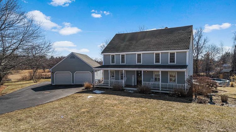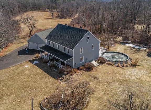 Enjoy the best of both with this wonderful home! Original 1865 Post and Beam Colonial was moved to its present location, now sitting on a poured concrete foundation and full basement. The house has been completely renovated including new wiring and plumbing, retaining its beautiful original wood floors. The first floor is highlighted by a remodeled Kitchen, Half Bath and Mudroom. The two Bathrooms upstairs are also remodeled, one of which is a private Master Bath. Enjoy the peaceful setting outside on the Farmers Porch, or this summer family and friends will love the above-ground pool with wraparound deck! The house sits on a beautifully landscaped level lot, with nearby conservation land offering years of privacy. Located on one of the most desirable roads in Pelham, with open spaces, rolling hills and a quiet country feel. Here you can get away from it all, yet still be close to shopping and major commuter routes. Truly the best of both! Showings begin Saturday April 17th.