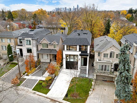 Situated on an exceptional 31 x 150 ft south-facing lot, this newly constructed 4,200 sq. ft. residence offers refined living in the heart of the coveted Cricket Club community, an address synonymous with prestige and family appeal. The home welcomes with a stately Mahogany front door and a heated driveway, walkway, and steps providing year-round comfort and ease. Soaring 10-foot ceilings and full-height windows create an airy, light-filled ambiance, while wide-plank white oak floors and tailored LED lighting add warmth and sophistication throughout. At the heart of the home, the Italian-crafted Scavolini kitchen is both striking and highly functional featuring Miele Series integrated appliances, stone countertops, custom cabinetry, and an elegant waterfall island with wood table extension. The open-concept family room flows seamlessly outdoors through oversized sliding glass doors, revealing a spacious deck perfect for hosting or relaxing in privacy while enjoying the surround sound system. The upper level is designed with family comfort in mind, offering four generously scaled bedrooms each with its own private en-suite and custom built-in closets. The primary suite is a sanctuary unto itself, complete with a spa-like bath, expansive walk-in, and balcony w/tranquil views. The 2nd Bdrm is as spacious as the primary Bdrm! The lower level offers versatility and elegance with radiant in-floor heating, Italian porcelain slab floors, a separate entrance, private bedroom with en-suite bath, laundry, and wet bar ideal for guests, extended family, or live-in support. An unmatched location walking distance to Avenue Road Shops/Cafes/Restaurants, the prestigious Cricket Club, minutes to Rosedale Golf Club, and close to Toronto's top private and public schools including Havergal, Crescent, TFS and Lawrence Park Collegiate. Quick access to Hwy 401 and York Mills subway. A rare opportunity to enjoy discreet luxury in one of Toronto's most established family neighbourhoods.