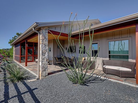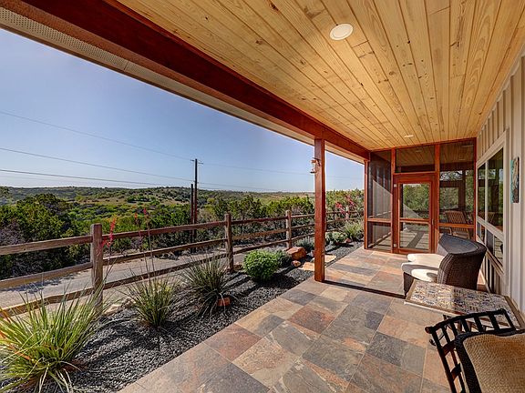 Custom Joe Atkinson-Built Hill Country Home with exclusive Guadalupe River Access in Marymeade Subdivision, Hunt, TX. This beautifully designed home offers a seamless blend of traditional charm and modern style. A stone-walled front courtyard sets the tone for privacy and relaxation. Inside, the open-concept layout features cathedral ceilings with rough-hewn beams, a stone fireplace with built-ins, and a large, covered, screened-in patio with fireplace and cedar split railings to preserve the view. The Island kitchen is both stylish and functional, with shaker-style cabinetry, a farmhouse sink, and plenty of storage. The bright dining area includes a built-in hutch and large windows that bring in natural light. The split-bedroom layout offers comfort and privacy, with each bedroom featuring a door and large windows for easy outdoor access. The owner's suite includes dual marble vanities, large walk-in shower, and a spacious closet with built-ins. A second bath features a tub/shower combo, and laundry room that offers generous counter and storage space. Most furniture is negotiable. Move-in ready! DON'T MISS OUT ON THIS ONE!