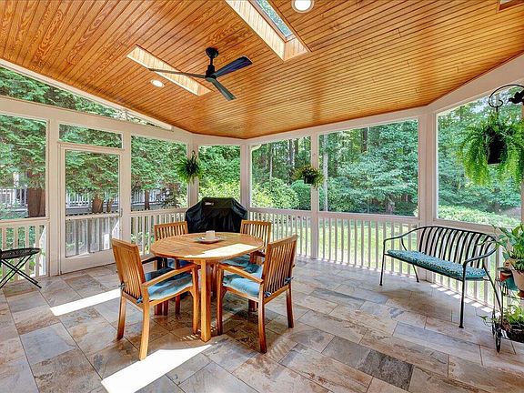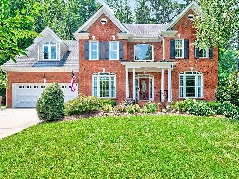 Beautifully Maintained Cary Home in One of the Area's Most Desirable Communities, Cambridge at Regency! Meticulously maintained and thoughtfully updated, this 4-bedroom, 3.5-bath home offers timeless elegance, modern comfort, and a prime Cary location with quick access to Highway 1 and 64. The curb appeal immediately stands out, a stately brick front exterior surrounded by lush, mature landscaping. Inside, you'll find solid hardwoods throughout the main level, a dramatic two-story foyer, and a light-filled family room with soaring vaulted ceilings and a gas fireplace featuring a new slate surround (2023). The kitchen is both stylish and functional, featuring quartz countertops (2023), a subway-tile backsplash, and stainless-steel appliances (2023) including a gas cooktop. The adjoining breakfast nook, framed by walls of windows, overlooks the serene backyard and opens to a stunning oversized screened-in porch with a wood-paneled ceiling, skylights, and peaceful views of the park-like backyard - the perfect spot to relax or entertain year-round. The first-floor owner's suite serves as a private retreat with hardwood floors, a tray ceiling, and a recently renovated bath with dual vanities, quartz counters, a soaking tub, and a frameless glass shower. Upstairs you'll find three additional bedrooms (one with its own ensuite bath), a versatile bonus room with hardwood flooring, and an unfinished storage area on the second floor that could easily be converted into another bedroom or flex space. A walk-up third-floor attic offers even more storage or potential for future expansion. Recent updates include, roof (2018), hot water tank (2023), all new windows with a lifetime warranty (installed over the past 7 years), quartz countertops in kitchen and laundry (2023) and stainless appliances (2023). The yard features a full irrigation system in both the front and back for easy maintenance. Residents of this sought-after community enjoy resort-style amenities including two swimming pools, two tennis courts, a playground, and sidewalks throughout. Just moments away are Koka Booth Amphitheatre, the Cary trail system, greenways, and lake access, all adding to the incredible lifestyle this location provides! Lovingly cared for and continuously improved, this home blends elegance, comfort, and convenience, a rare opportunity to own a meticulously maintained property in one of Cary's most desirable neighborhoods!