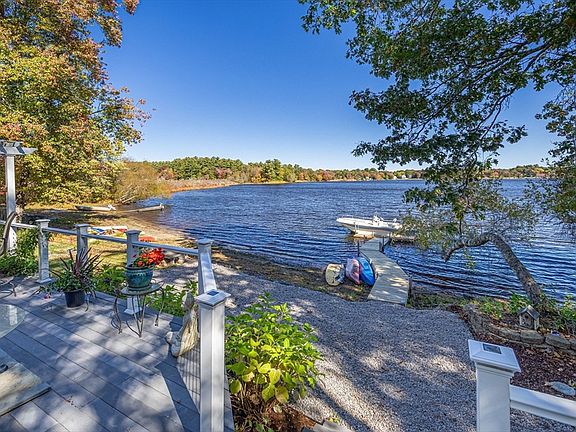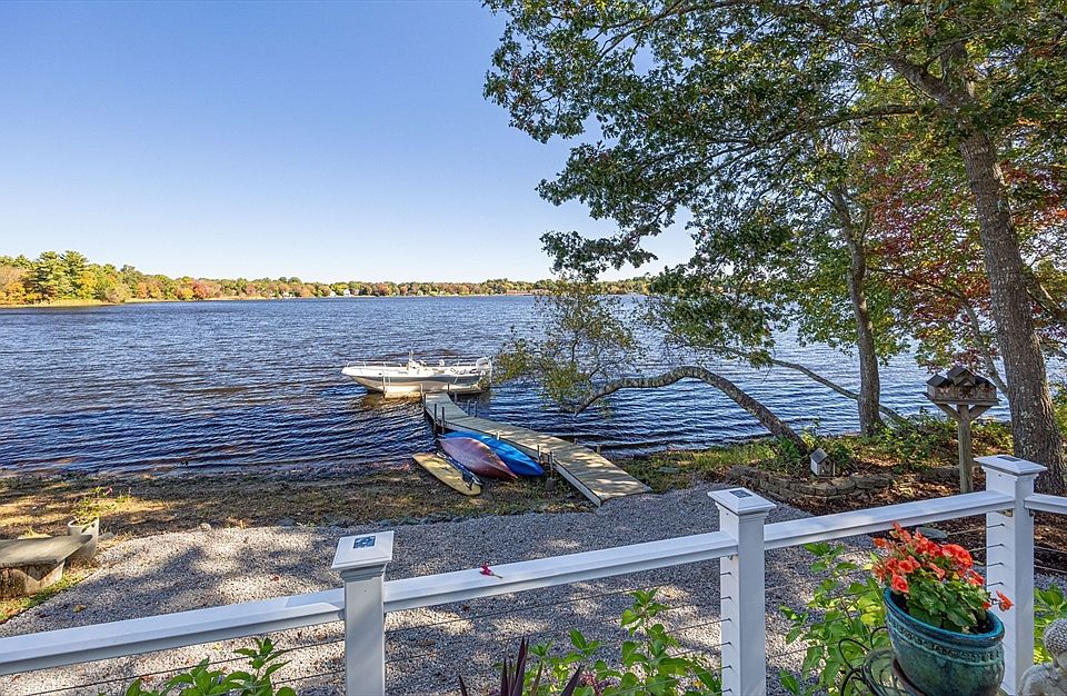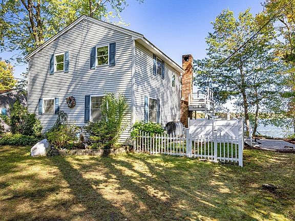 Welcome to this spectacular, one-of-a-kind 3-bedroom, 2-bathroom waterfront home on beautiful Lake Winnecunet. Enjoy unobstructed lake views from this open-concept design featuring hardwood floors throughout. The living room, kitchen, and primary bedroom all offer stunning water views. This home is equipped with mini splits throughout, a striking stone fireplace, and custom woodwork in the dining area. The primary bedroom opens to an upper Trex deck overlooking the lake, with a staircase leading down to a lower deck featuring a 6-person hot tub beneath a pergola — perfect for relaxing or entertaining.Additional highlights include a second-floor laundry, a mudroom with extra storage, and a garage with attic space located on a separate lot across the street, complete with its own electrical service.Situated on a quiet dead-end road adjacent to the town forest, you’ll have access to scenic hiking and biking trails while being just minutes from Routes 495, 24, and 95.