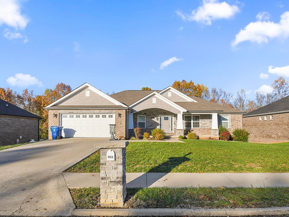 **Stunning Modern Oasis in the Heart of the Vue Development** Welcome to your dream home! Nestled in the highly sought-after Vue development, this exquisite 2021 Wiggington construction boasts unparalleled curb appeal and an abundance of modern charm. From the moment you step through the front door, you'll be captivated by the bright, open concept floor plan that elegantly blends style and functionality. As you enter, you're greeted by soaring vaulted beamed ceilings that create an airy atmosphere in the spacious great room, highlighted by a cozy fireplace—perfect for cozy gatherings or quiet evenings. The seamless flow from the great room to the dining area and gourmet kitchen makes entertaining a breeze. The kitchen is a chef's delight, featuring high-end finishes such as custom cabinetry, luxurious granite countertops, a chic tile backsplash, and top-of-the-line stainless steel appliances. Ample recessed lighting illuminates the space, enhancing the modern aesthetic and creating an inviting ambiance. Offering the ultimate in privacy, this home features a thoughtfully designed split bedroom plan. Two generously-sized bedrooms share a beautifully appointed full bath, while the stunning master suite serves as a tranquil retreat. The master bath is a spa-like haven with dual vanities, providing plenty of space for your morning routine, and a spacious walk-in closet that offers ample storage for all your wardrobe needs. Conveniently located adjacent to the master suite, the well-equipped laundry room adds to the practicality of this exceptional home. Venture downstairs to discover the finished basement, a versatile space that can be tailored to your lifestyle. Whether you envision a family game room, home theater, or a vibrant recreation area, this vast family/recreation room will not disappoint. Additionally, the spacious basement bedroom with its own walk-in closet and full bath provides a perfect guest suite or private retreat for older children. The utility garage offers extra space for storage or workshop needs, and the convenient walk-out leads directly to a charming patio surrounded by a lush, beautifully landscaped lawn. Imagine sipping your morning coffee on the lovely front porch, basking in the tranquility of your surroundings, or hosting summer barbecues on the expansive deck or patio, complete with a cozy firepit for cool evenings. This home is not just a place to live; it's a lifestyle—one that promotes relaxation, entertainment, and cherished memories. Don't miss your chance to own this show-stopping property in an unbeatable location. Schedule your private tour today and discover how this stunning home can elevate your living experience. Your perfect sanctuary awaits!