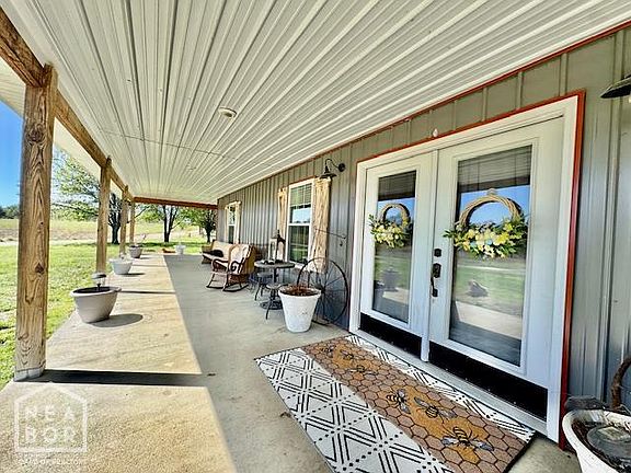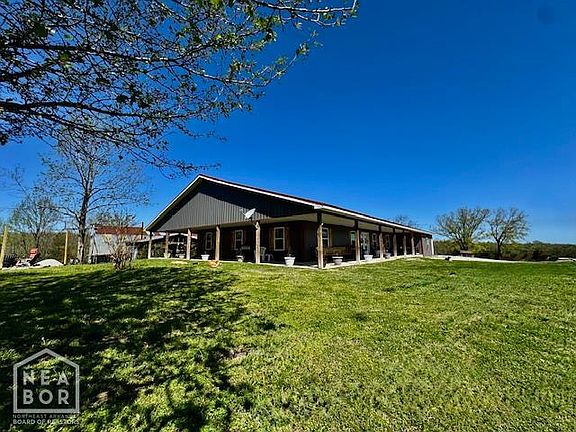 This custom 2020 barndominium sits on a peaceful, sprawling 10+/- acres and blends efficient design with true rural charm. An airy, open-concept layout showcases thoughtful custom touches, while durable metal siding/roof and spray-foam insulation keep maintenance low and utilities smart. Enjoy sunrise coffee or sunset grilling on the wraparound covered porch, and bring all the gearthere's a 2-car attached garage plus a large storage room that leads to a lower-level area that could serve as a storm shelter. The split floor plan offers privacy and function. The spacious primary suite features dual closets, a sliding door to the porch, and a spa-style bath with custom double vanity, rain showerhead, and direct access to the laundry room. Four additional bedrooms plus a flex room (easily a 6th bedroom, gym, office, game/craft room, man cave, or second living area) give you options to grow and gather. Highlights: ~ All-electric home with spray-foam insulation throughout ~ Wraparound covered porch for relaxing & entertaining ~ 2-car attached garage + large storage room; lower-level area suitable as a storm shelter ~ Abundant storage and closets throughout ~ Land & Improvements (Hobby Farmer's Dream) ~ 40' x 60' shop with electricity ~ Several outbuildings (negotiable) ~ Pig pen, chicken coop, horse pastures, and kennels for hunting dogs currently on site ~ Fenced pen previously housing an alpaca, mini pony, and goat (animals not included) Whether you're homesteading, need room for a crew, or simply want space and quiet, this property checks every box. Schedule your private tour today. This custom 2020 barndominium sits on a peaceful, sprawling 10 +/- acres and blends efficient design with true rural charm. An airy, open-concept layout showcases thoughtful custom touches, while durable metal siding/roof and spray-foam insulation keep maintenance low and utilities smart. Enjoy sunrise coffee or sunset grilling on the wraparound covered porch, and bring all the gear—there's a 2-car attached garage plus a large storage room that leads to a lower-level area that could serve as a storm shelter.The split floor plan offers privacy and function. The spacious primary suite features dual closets, a sliding door to the porch, and a spa-style bath with custom double vanity, rain showerhead, and direct access to the laundry room. Four additional bedrooms plus a flex room (easily a 6th bedroom, gym, office, game/craft room, man cave, or second living area) give you options to grow and gather.HighlightsAll-electric home with spray-foam insulation throughoutWraparound covered porch for relaxing & entertaining2-car attached garage + large storage room; lower-level area suitable as a storm shelterAbundant storage and closets throughoutLand & Improvements (Hobby Farmer's Dream)40' x 60' shop with electricitySeveral outbuildingsPig pen, chicken coop, horse pastures, and kennels for hunting dogsFenced pen previously housing an alpaca, mini pony, and goat (animals not included)Whether you're homesteading, need room for a crew, or simply want space and quiet, this property checks every box. Schedule your private tour today.