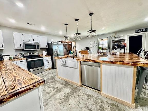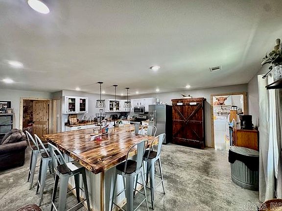 This custom 2020 barndominium sits on a peaceful 10± acres, combining modern efficiency with rustic charm. Inside, the open-concept design highlights thoughtful craftsmanship and low-maintenance finishes, including metal siding, a metal roof, and full spray-foam insulation for energy efficiency. The split floor plan provides both comfort and privacy, featuring a spacious primary suite with dual closets, porch access, and a spa-inspired bath with a double vanity, rain shower, and direct entry to the laundry room. Four additional bedrooms and a versatile flex room offer space for family, guests, or hobbies. Enjoy outdoor living on the wraparound covered porch—perfect for sunrise coffee or sunset grilling. A two-car attached garage, large storage room, and lower-level storm-shelter area add functionality. Outside, the property is a hobby farmer’s dream, with a 40x60 wired shop, several outbuildings (negotiable), and fenced areas currently used for livestock and kennels. Whether you’re homesteading, hosting, or simply seeking room to roam, this property offers the ideal blend of space, comfort, and country living.