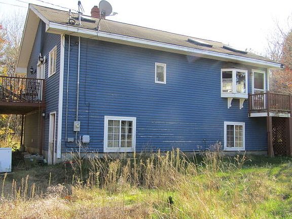 Privacy is assured on this 21 acre property. 3 bedrooms, 2 full baths, cathedral ceilings, 2 decks. There is an oversized 2 car garage that would accommodate a very large vehicle. Perfect for an auto/truck mechanic.