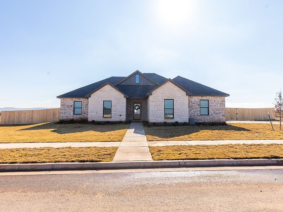 Home Sweet Home! Beautifully upgraded 4 bedroom 2.5 bathroom one story home in the highly desired Hunter's Landing community! Home offers an open floor plan with luxury vinyl plank and custom lighting throughout. The kitchen has built in stainless steel appliances, ample counter and cabinet space, and large island with upgraded apron sink. Large primary suite features separate dual vanities, spa tub, walk-in shower, and oversized walk-in closet that connects to the laundry room. The home sits on private half acre with beautiful mountain scenery. Crown molding and tall baseboards throughout! Wylie ISD!