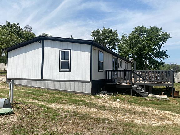 HOME ONLY, LOCATED ON LEASED LOT. This is a 3 bedroom 2 bathroom doublewide mobile home. The home is located on a half acre leased lot, the monthly lot rent is $1,050. The home is 1456 square feet and was built in 2019. This home has had some recent renovations including drywall and texture. The H-vac and all other systems/appliances work. The decks will be included in the sale. This home can either be purchased with cash or we can connect you with a lender. For financing, the estimated monthly payment is $808.62 with $7,000 down for a 25 year loan term.