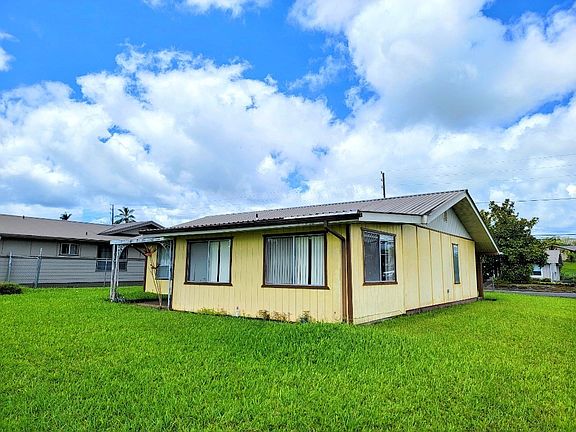 Don't miss this opportunity to own a home in the desirable Hilo Country Club Estates community. This corner lot property is convenient to Wilder Road and the Puainako Extension for quick trips to the conveniences of Hilo or to Saddle Road, Waikoloa, and Kailua-Kona. The home has many of its original features and finishes for a nostalgic trip down memory lane, or you can choose to remodel the home to your customized preferences; the options are limitless. The house is laid out with a formal living room to the front and a large, central eat-in kitchen/dining area that is open to the family room in the back of the house and a covered patio at the back (lanai). The lawn and landscaping screen allows for gentle breezes to cool the patio (lanai) and home. Imagine yourself sitting in the backyard enjoying the cooler weather of Kaumana.