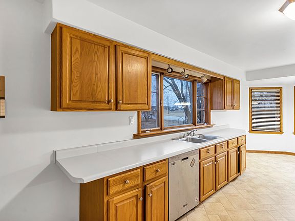 Home is priced to sell! Bring your own ideas to this brick bungalow with a finished upper level. Plenty of options with this floor plan. Two wood burning fireplaces - one on the main floor and one in the basement. The finished upper level could be used as 2 bedrooms with a play or study area in between. The large main bath has a double vanity and soaking tub. There is room for a workshop in the 2.5 car garage. Located on a .5 acre lot with a dog run. Unincorporated Sycamore and close to everything! With TLC, this home can shine!