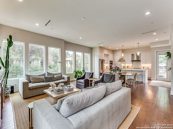 Luxury Townhome in Alamo Heights ISD with soaring ceilings, natural light, private elevator, custom walk-in closets, private turf yard, and 2 car garage. This sleek home has been designed with extreme attention to detail & the finish outs are transitional and stunning. The kitchen has a large island for cooking & entertaining with quartz counter tops, a gas cook top, & Jenn Air appliances. This 3-4 bedroom home has a study/bonus space and tons of storage!
