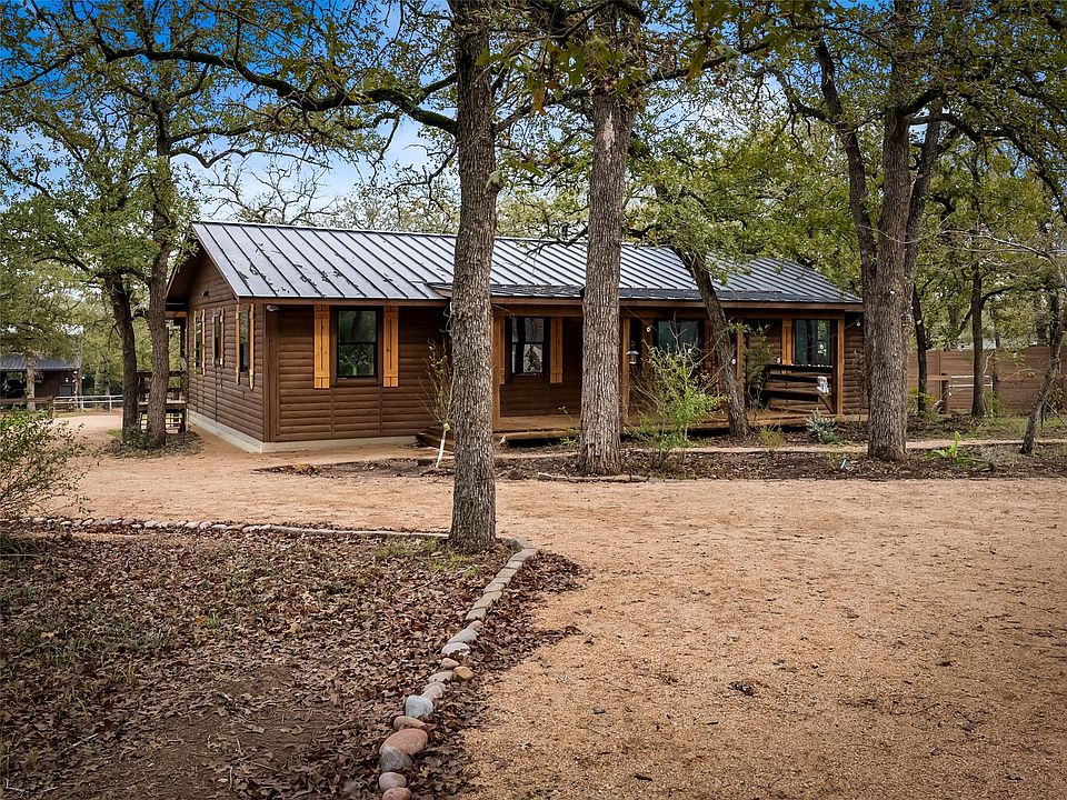 On five acres in Smithville, Sweetheart Ranch offers a turnkey creative retreat with multiple structures, a new barn and apartment, and a pond—an easy, design-forward escape less than an hour from Austin. Fully taken to the studs, the main home has been rebuilt with a warm, modern aesthetic. Wood wraps the exterior and interior, complemented by raised ceilings, a new metal roof, and a streamlined wood-burning fireplace finished in smooth cement. The two-bedroom layout feels calm and cohesive, with an all-wood backdrop and a farmhouse kitchen featuring butcher-block counters and an apron-front sink. Generous windows and covered porches on both sides connect the home to its five-acre setting. A brand-new barn and barn apartment were built to complement the property’s aesthetic and function. The barn includes three stalls, a feed room, tack room, and pasture access. Above it, the full apartment continues the wood-wrapped look with a kitchenette, full bath with a claw-foot tub, a bedroom, and elevated views that create a sense of privacy and retreat. A detached container structure adds flexible space for a studio, office, or guests. With a half bath, kitchenette, lofted area, and elevated deck, it expands the property’s usability without competing with the main home. The land is inviting and intentional, with a pond designed for swimming, a chicken coop, and acreage that leads to a wet-weather creek. The property also includes an updated septic system and an electric car charger. Smithville offers the charm of a historic small town with an artistic, tight-knit community, local shops, cafés, galleries, and a creative culture shaped by its film history and local makers. It provides the space and ease of rural living without feeling remote. Acreage, design, and usability rarely align this well this close to Austin. Sweetheart Ranch manages all three—quietly, intentionally, and with room to grow.