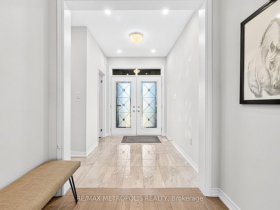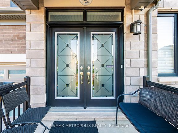 Exceptional modern detached residence in one of Bowmanvilles most desirable neighbourhoods. Offering approximately 3,000 sq. ft. above grade, this home is thoughtfully designed with premium finishes and a functional layout. The custom chefs kitchen is appointed with top-of-the-line Miele appliances and elegant cabinetry, complemented by hardwood flooring and recessed lighting throughout the main level. Expansive picture windows frame unobstructed ravine views, with the primary suite enjoying additional lake vistas.The second level features a luxurious primary retreat with spa-inspired 5-piece ensuite and walk-in closet, a secondary bedroom with private ensuite and walk-in, plus two additional bedrooms connected by a Jack & Jill bath. Custom closets, large windows, and refined details enhance every room. The walk-out basement with 9 ceilings and oversized windows offers abundant natural light and future living potential. Situated on a premium ravine lot with an oversized backyard, the property combines privacy with convenience just minutes to Hwy 401/418, shopping, dining, schools, and amenities. A new $120 million recreation facility is also under development within walking distance, further elevating the value of this location.
