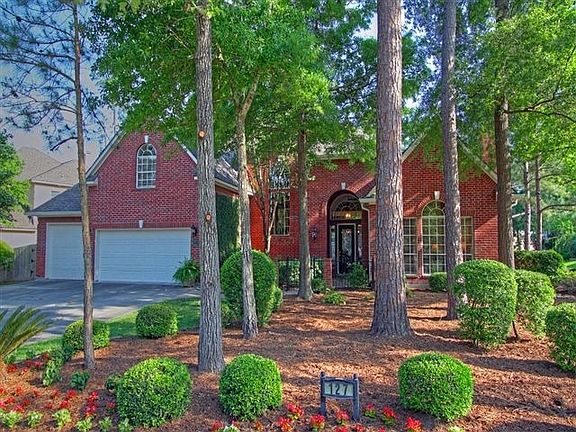 This show-stopping home by Meyer and Leigh is full of fantastic features and open spaces. Enjoy beautiful built-ins, extra storage closets and cabinets, hardwood flooring, new light fixtures, new carpet (installed in 2010), soaring coffered and trayed ceilings, elegant wall finishes, neutral colors, dentil crown molding, large windows and decorative fixtures throughout the home. 127 Berryline is situated on a large, corner lot full of mature trees, manicured beds and blooming landscape. A wide, curved driveway can accommodate up to 5 vehicles, outside of the 3-car attached garage with it's own dedicated workspace. Upon entering 127 Berryline, you are greeted by warm oak hardwood flooring, a high barreled ceiling with an elegant chandelier, and lots of natural light from large open windows in the dining room. Convenient to the front entry are the formal living and dining rooms with an adjacent half bath, well-positioned for dinner parties and entertaining house guests. A pass-through "butler's window" between the formal dining and kitchen makes food service easier as well. The spacious island kitchen offers granite counters, over-sized wood cabinets, stainless steel appliances including a Bosch dishwasher and 4-burner gas range, KitchenAid double convection ovens, refrigerator and microwave, and a stainless steel sink under an open window with beautiful views of the backyard oasis. Open to the kitchen and sunny breakfast area, the family room boasts subtle faux wall finishes with dentil crown molding, custom wall cabinetry, Hunter Douglas wood blinds and a built-in entertainment center with hidden television cabinet, above a gas log fireplace with marble tile surround and a decorative hardwood mantle matched to the crown molding. Just off the family room is the utility room with lots of cabinet storage, easy-to-clean tile counter, plus an attached pool bath with convenient access to the backyard. Past the formal dining lies the executive study, with it's floor-to-ceiling hardwood paneling and built-in file drawers, desk and shelves. Just beyond the study is the master suite, loaded with mentionable features! The master bedroom includes upgraded carpet, high trayed ceiling with decorative crown molding, more Hunter Douglas wood blinds, spa-colored walls and private door access to the backyard garden and pool. The master bath offers 12-inch tile flooring, dual vanities with double sinks, upgraded cabinetry and drawer pulls, a large whirlpool soaking tub, and a spacious, two-sided walk-in closet with plenty of built-ins for additional storage. Venturing upstairs, you will find a large game room with an attached media room. The game room is pre-wired for sound system with inset speakers, ideal for movie night or music upstairs, and has access to the covered upstairs balcony, which overlooks the sparkling swimming pool and spa below. Three bedrooms are located just off of the game room, all with high ceilings, walk-in closets, wood blinds, and upgraded carpet installed in 2010. Have a seat and soak in the atmosphere from the shade of the covered backyard veranda. Great for hosting a summer party or for sharing a romantic evening, the private, gunite swimming pool and spa is the perfect place! This 33-foot custom pool, built by B2, has beach-style sun shelves and fountains. Pebble decking surrounds the area, providing additional space for seating and lounging. Blooming plants and flowers, plus mature trees and greenery, add privacy and provide a sense of utter escape. The central location in Panther Creek is near the entertainment, restaurants and shopping of The Woodlands Mall, Market Street and The Waterway. 127 Berryline is a brisk walk away from Northshore Park or the local Starbucks. Sometimes, it is even close enough to hear the music from Cynthia Woods Mitchell Pavilion in the spring to fall concert season! 127 Berryline is truly a place for generations to come. Welcome home.
