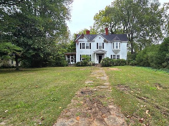 SO MUCH POTENTIAL with this rehab project! This beautiful historic home is almost 3000 square feet and full of character. ENORMOUS bedrooms, wood flooring throughout, designated dining room, large kitchen with a butler prep area & pantry, additional utility/pantry room great for laundry. Main level master bedroom + full bathroom adjacent. 4 additional bedrooms with another full bathroom, roomy screened in porch, each with TALL CEILINGS. All this + architectural character = upstairs turret window, high pitch metal roof, grand foyer entryway. Sits on 2.15 acres of level land with a detached 2-story 2-car garage, in the charming downtown area of historic Chatham, close to restaurants, shops, offices, Hargrave Military Academy, & Chatham Hall Girls School. Being sold as-is where-is