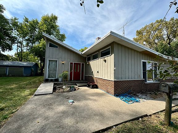 This 3 bedroom, 2 bath home sitting on 5 acres in peaceful Gibson City offers fantastic opportunities to make it your own! You'll find great space inside starting in the spacious living room, separate dining room, large kitchen and bonus family room featuring a cozy brick fireplace. The primary bedroom boasts a private full bath with walk-in shower. Two additional guest bedrooms share the hallway bath. Discover additional living space up in the loft area! Outside, two large patio areas provide plenty of space to entertain! Sold as is.
