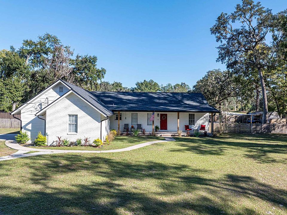 This beautifully remodeled 4/2 home offers the perfect blend of modern style and everyday comfort. Completely renovated in 2022, the home features new flooring, a stunning updated kitchen, stylish bathrooms, a new roof, AC, and hot water heater — everything has been done for you! The garage floor has a durable Shark coating and added insulstion, adding both function and polish to the space. The move-in-ready interior is bright and inviting, while the fenced backyard provides privacy and space for pets or outdoor gatherings. Conveniently located close to town yet tucked away from the hustle and bustle, this home combines quiet living with easy access to all local amenities. Plenty of parking and an outdoor shed for storage completes the package — a true must-see!
