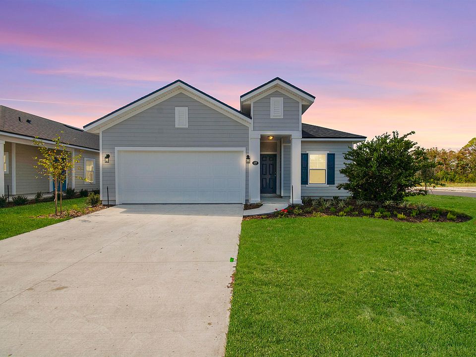 **Owner Motivated**Home completed Oct 2022. Come enjoy all the brand new smells in this 3 bedroom 2 bath move in ready home. This home sits on a private corner lot with only one neighbor. Well finished kitchen with Quartz counter tops, stainless steel appliances and LVP flooring throughout the main area. Home offers a large living dining combo, a flex bonus room and a split floor plan.The master has three large bay windows with a beautiful nature view. MB has a large walk in shower, soaker tub, quartz counter tops and ceramic flooring. All bedrooms have plush carpeting for that early morning rise. Enjoy a fresh cup of coffee on your back lanai as you relax before your workout in the club house just mins down the street. All this in a gated community. Hurry this one won't last long.