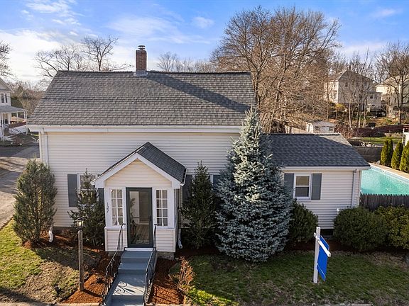 Welcome Home to this lovely sunny updated colonial on a quiet family friendly street in desirable East Dedham. Situated on a large corner lot with a fenced in yard, beautiful in ground pool with plenty of additional space for fire pit, play area and garden beds - a perfect oasis for entertaining family and friends. This home features an updated stainless steel kitchen with vaulted ceiling and skylight with white cabinets and quartz countertops. The bonus room off the kitchen is perfect for use as a play space, office, or den with French doors that lead to a large deck with plenty of room for a large table and grill. Separate formal dining room, living room and spacious primary bedroom with ensuite complete the first floor. Upstairs has two large bedrooms and full bath. The finished basement adds flexibility for work from home, workout or play space/ storage in the large utility room, complete with washer / dryer. Detached one car garage with changing area for pool.