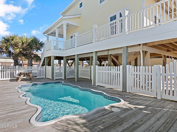 Beautiful Oceanfront home with a Pool! This lovely and convenient 4 bedroom, 3.5 bath home awaits as an investment or a family home or both! All new appliances, roof , 1 hvac ,and pool pump new in 2024. Storage underneath the house, just steps from the ocean and a pool for dipping. Steady and consistent rental income. 60-foot lot and walking distance to restaurants and summertime concerts. Public boat ramp under Holden Beach Bridge. Spend a day beach, or exploring neighboring beaches such as Oak Island, Ocean Isle Beach, & Sunset Beach. N Myrtle Beach, SC only 33 miles. Wilmington, NC airport is just 42 miles. This is the time to take a plunge on your dream beach home at Holden Beach!