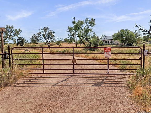 Set on over 10 scenic acres, this stylish white rock ranch home offers a perfect mix of rustic charm and modern ease. With an open layout, the 2-bedroom, 2-bath home features walk-in showers, durable tile flooring throughout, and a standing seam metal roof. A spacious covered back porch invites you to relax and take in the views, while the fenced backyard with a sprinkler-fed holding tank is ideal for pets, play, or gardening. Equestrian-ready, the property includes 4 horse stalls, a chicken coop, storage building, RV hookup, and full perimeter fencing for added privacy. A serene Hill Country retreat with thoughtful amenities for both living and leisure.