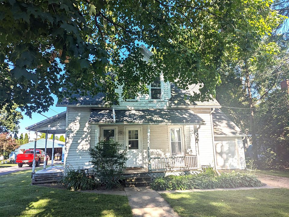 Two bedroom home close to village square - Newer furnace, AC, windows and flooring - Large level lot behind house with shed for storage - Kitchen features refrigerator, electric stove and microwave - Washer and Dryer in laundry area - both bedrooms on second floor-One car garage - good location to schools and stores - property has been a rental for years- Seller wants to sell in current condition
