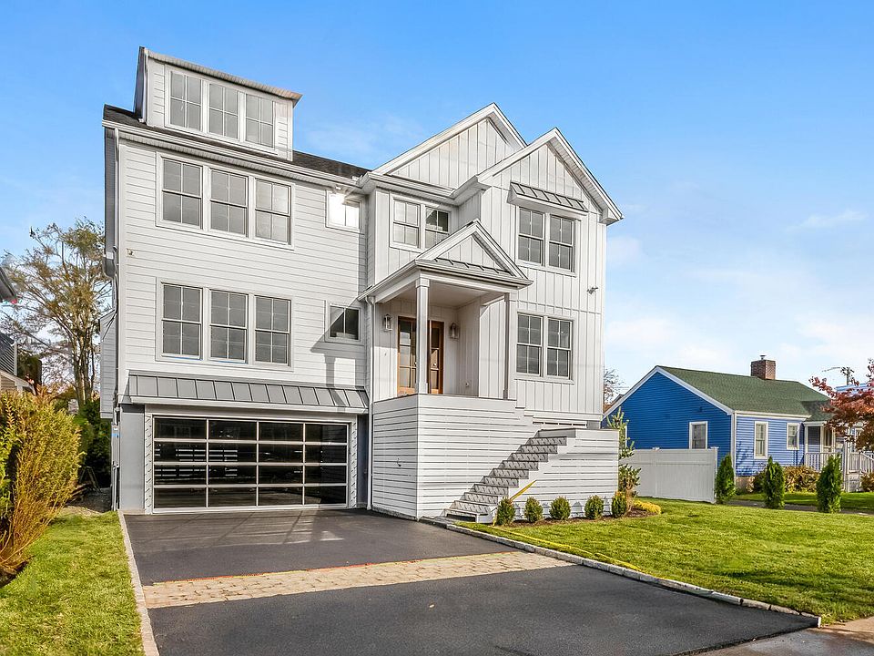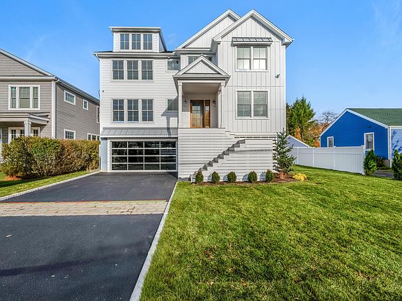 The house that dreams are made of-nestled in a walkable community near beach, quaint town center and train. Brand-new construction set for completion this year offers a seamless blend of understated elegance & coastal vibe. Fabulous 1st floor open floor plan features 9' ceilings and all generous size rooms: an inviting foyer, private mudroom, gourmet kitchen with 8' Quartz Island for entertaining. Top of the line Thermador appliances: 48" Gas 6 burner dual fuel convection range, 7' French door refrigerator, French Allia farmsink, dining area. Modern day "Keeping Room" adjoins the kitchen for cozy gatherings w/ Sliders to a covered deck for BBQ, generous Family room w/gas fireplace, formal living room, formal dining room w/panel molding. A walk through butlers pantry with wet bar and wine cooler, huge pantry and powder room complete the first floor. Custom shaker style cabinetry, exquisite moldings including ship lap and panel moldings throughout. Upstairs you'll find 4 ensuite bedrooms including a stunning Primary suite, impresses with vaulted ceiling and dreamy 11' x 12' walk-in closet. Spa-like luxurious primary bath has radiant heat floors, Rohl fixtures, pedestal soaking tub, frameless glass shower. 3rd floor has a 5th bedroom, full bathroom and extra playroom. Every closet is thoughtfully outfitted. Garage level has a 2nd mudroom, parking for 3 cars with Loggia area and ample storage. Experience your private oasis-designed for comfort, entertaining and luxury.